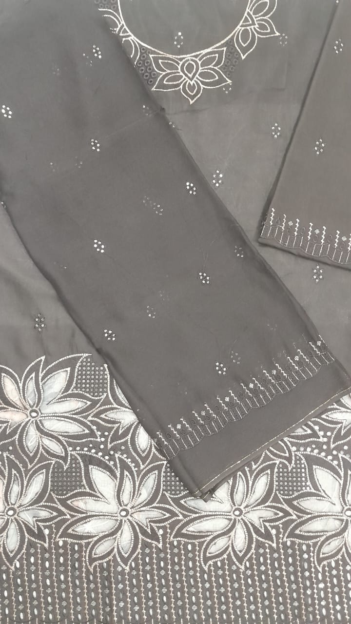 - Make a statement with our luxury designer lawn suit, featuring a shiny textured fabric and fancy intricate design, ideal for family gatherings, festive events, and special occasions. This elegant outfit blends premium embroidery, shimmering details, and soft breathable fabric, giving you a stunning and graceful look. Inspired by top brands, it’s the perfect choice for a glamorous celebration.